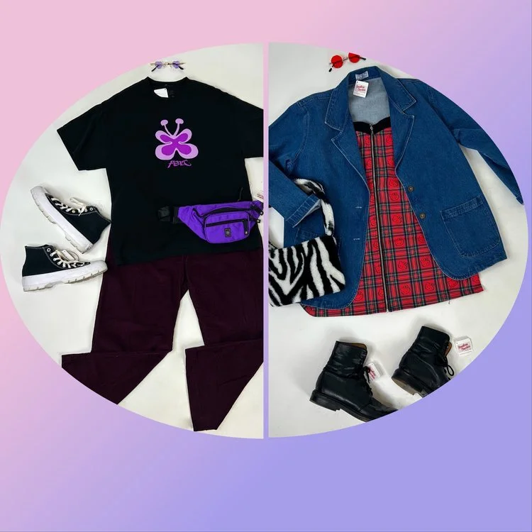 These two looks are cute, casual, and bold - perfect for a concert or evening at Meow Wolf.